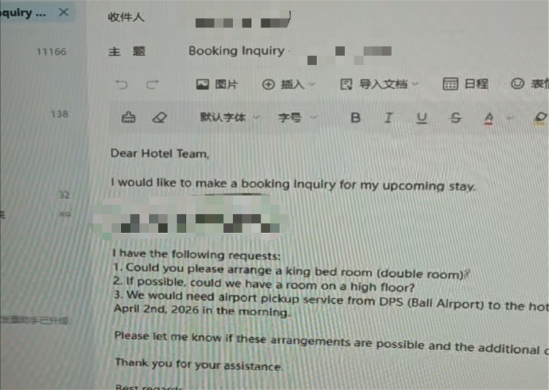 谈到实际应用场景,方先生最近刚完成一个典型的“养虾”任务。他刚订好月底将入住的巴厘岛酒店,随后他给“龙虾”发出指令,要求它发邮件给酒店,沟通安排接机和房间要求。“本来要自己写邮件,现在直接告诉OpenClaw相关要求,它帮我发送,有点像私人助理。”